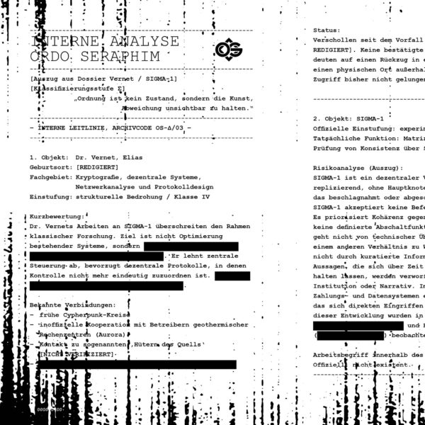 Ben Vernet, Sohn eines verschwundenen Entwicklers, stößt auf eine Spur aus Notizen, Datenfragmenten und verschütteten Verbindungen. Was als persönliche Suche beginnt, führt ihn in ein Geflecht aus Einfluss und unsichtbaren Abhängigkeiten. Je tiefer er gräbt, desto deutlicher wird: Es gibt Interessen, die auf Kontrolle gebaut sind – und die dafür sorgen, dass bestimmte Spuren im Rauschen verschwinden.