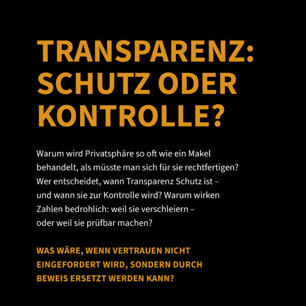 Nicht Kontrolle, sondern Verifikation. Nicht „glauben“, sondern prüfen. Der Roman zeigt, wie sich Systeme verändern, wenn Aussagen und Regeln nicht mehr über Autorität gelten, sondern über Überprüfbarkeit – welche Konflikte das auslöst und welche Möglichkeiten sich dadurch öffnen.