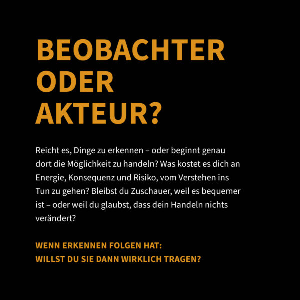 Kein Manifest. Keine Gewissheit. Nur ein Impuls: dort hinzusehen, wo sich das, was trägt, von dem trennt, was nur behauptet wird.