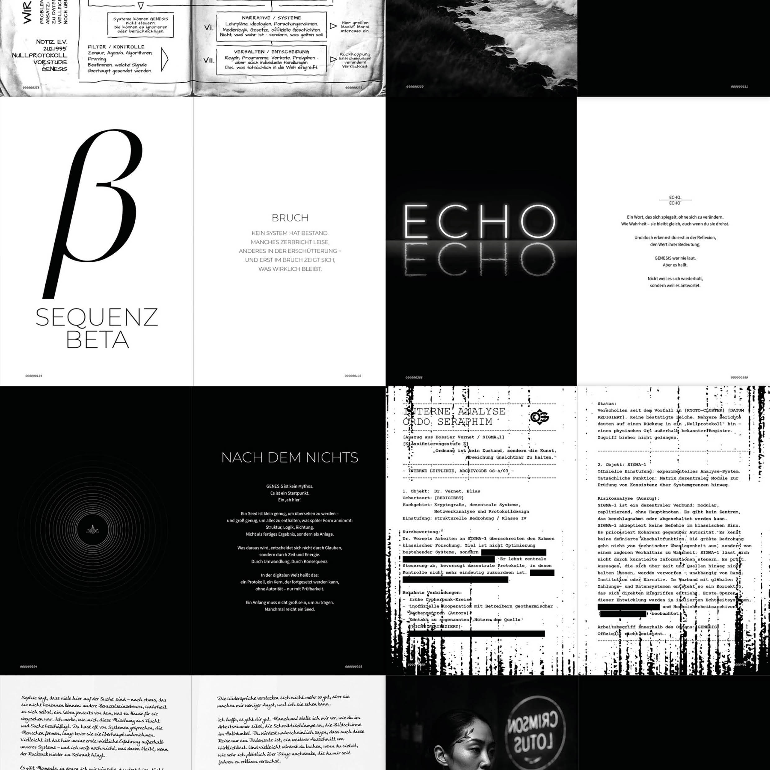 GENESIS SEED erzählt nicht nur eine Geschichte – es baut eine Welt. Zwischen Kapitelbildern, Dokumenten aus dem GENESIS-Kosmos, gestalteten Einschüben und einem ausführlichen Glossar entsteht ein Roman, der sich nicht nur lesen lässt, sondern Schicht für Schicht erschließt.